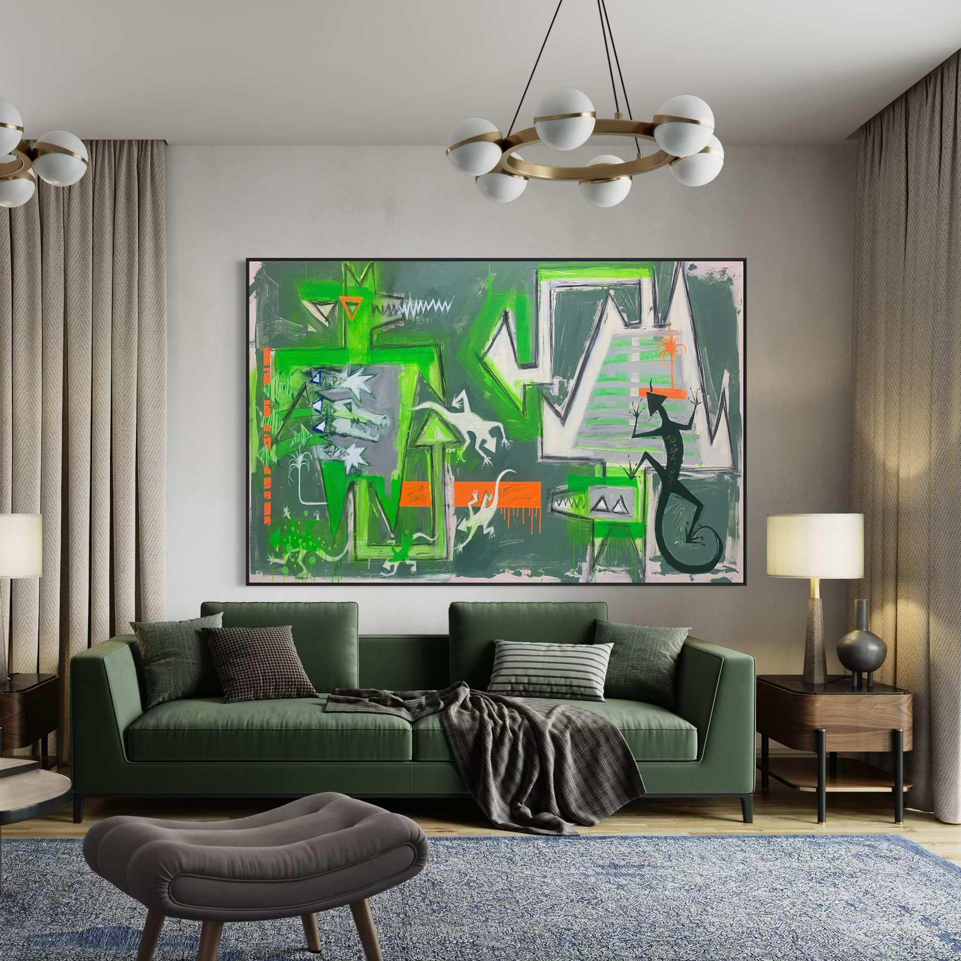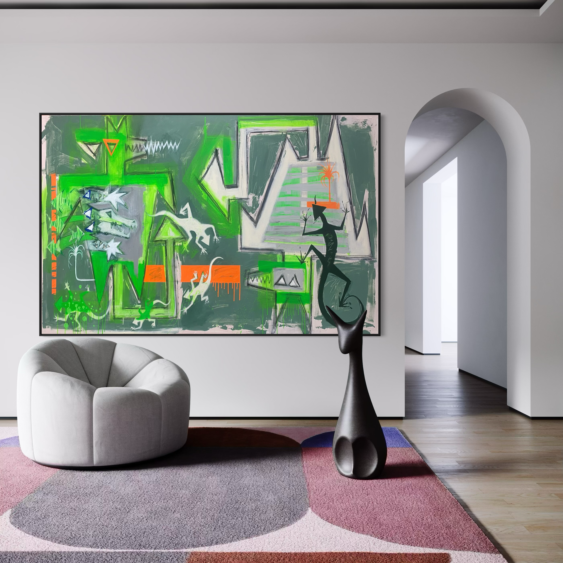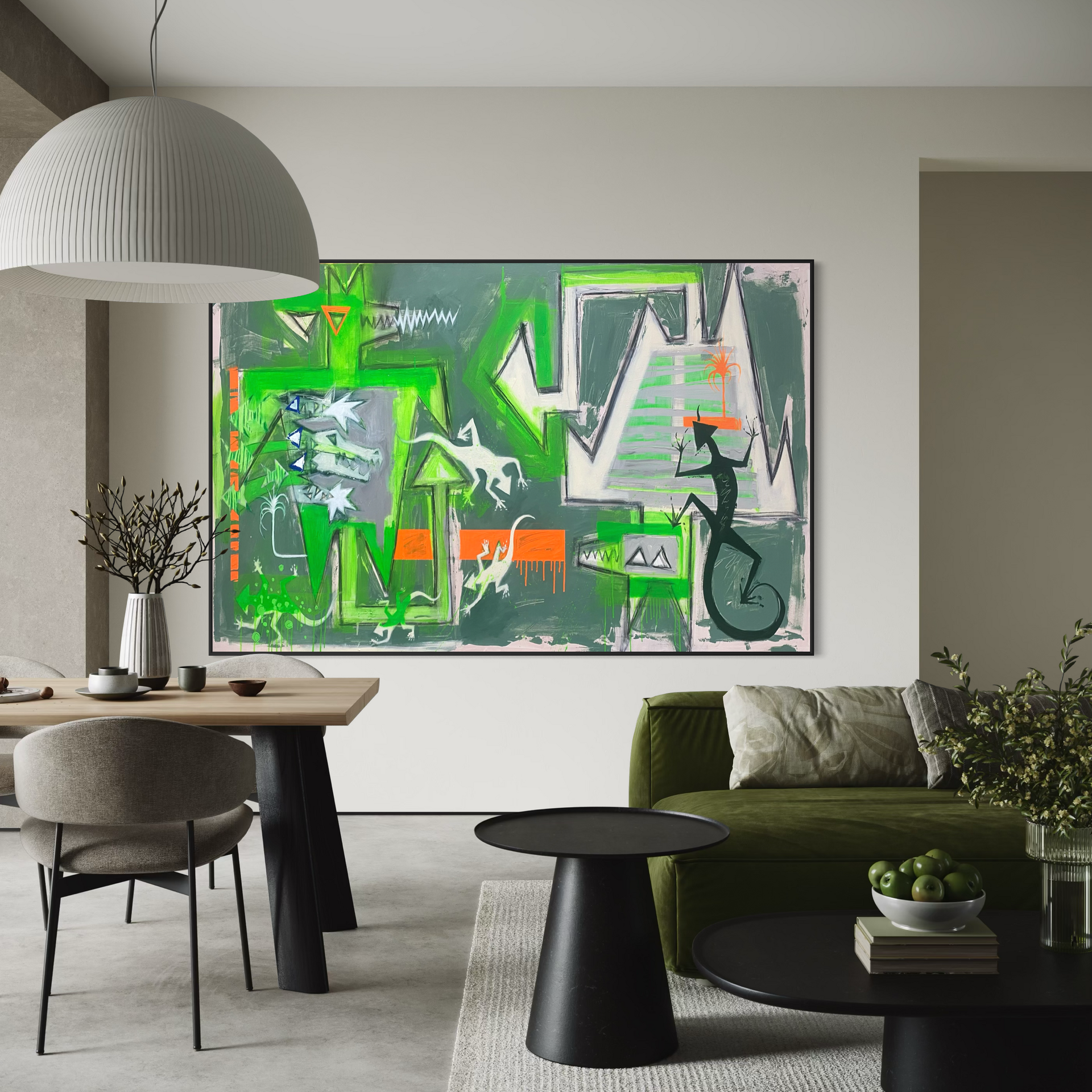 These green creatures and jagged shapes are my memory of that tension… beauty and damage side by side.