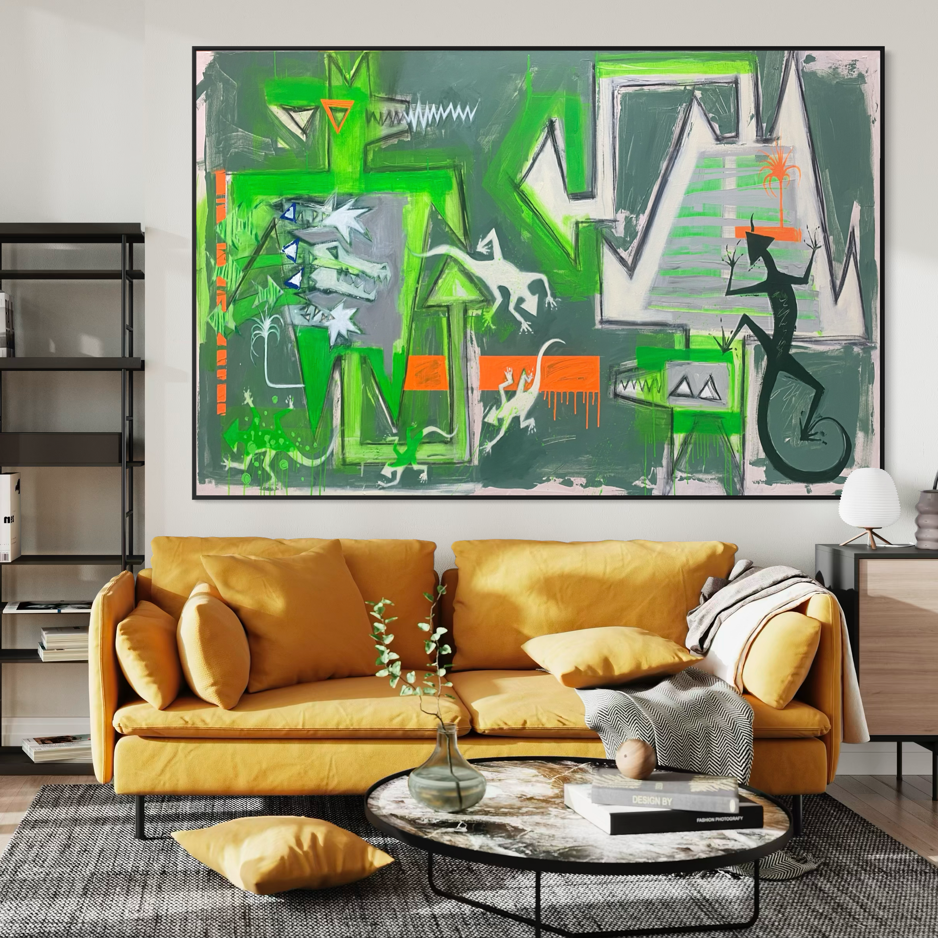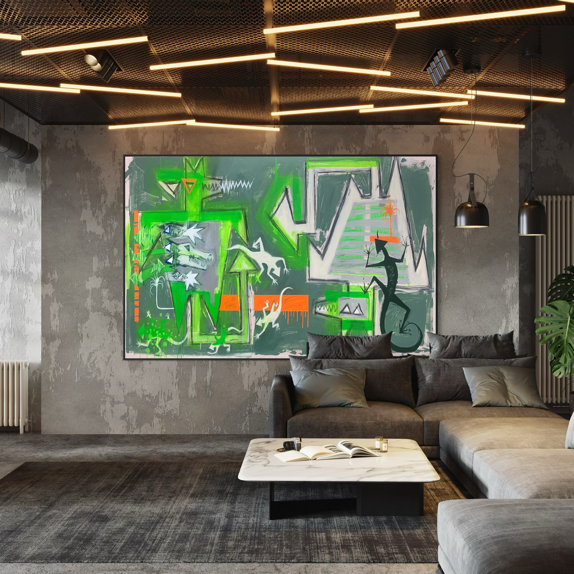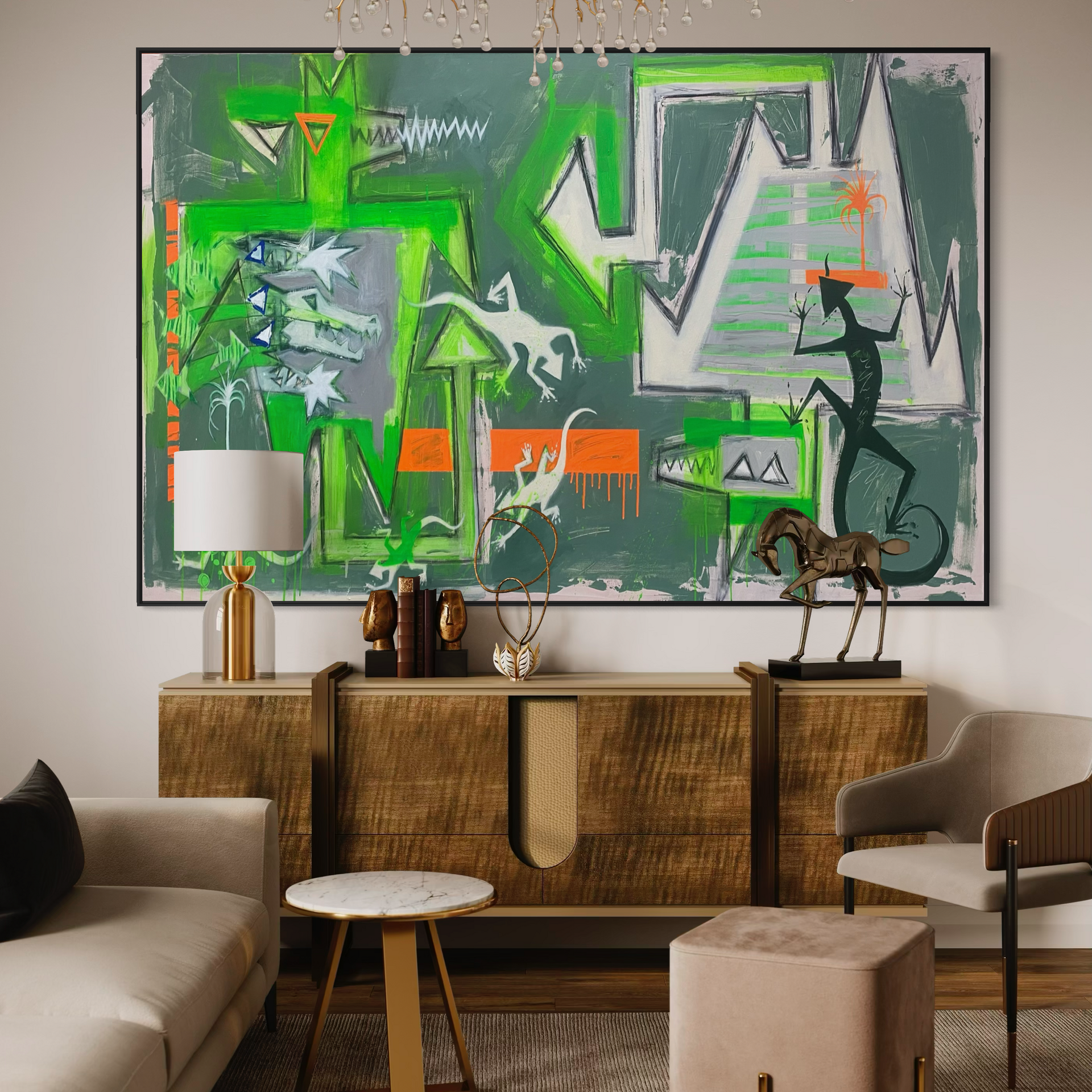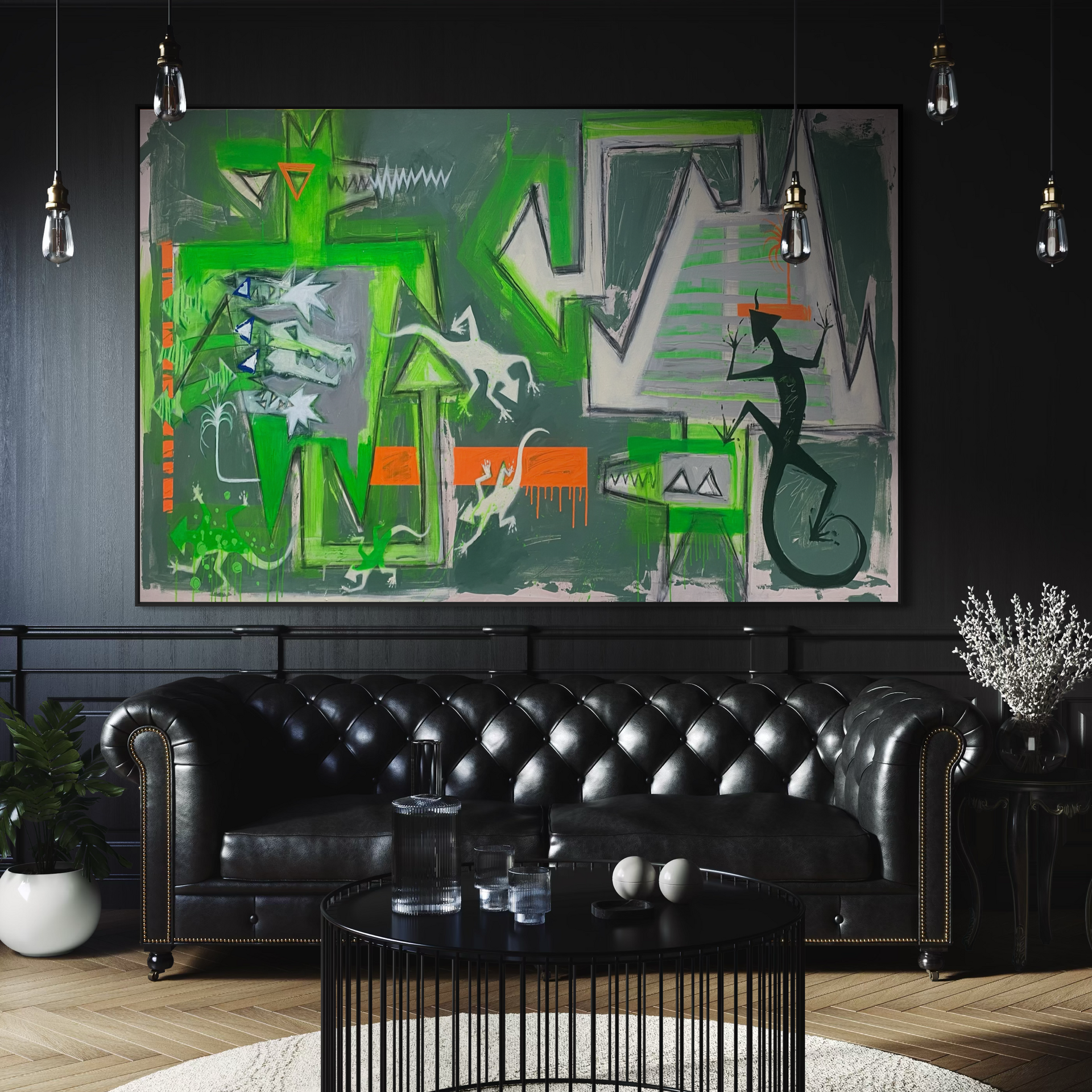 These green creatures and jagged shapes are my memory of that tension… beauty and damage side by side.