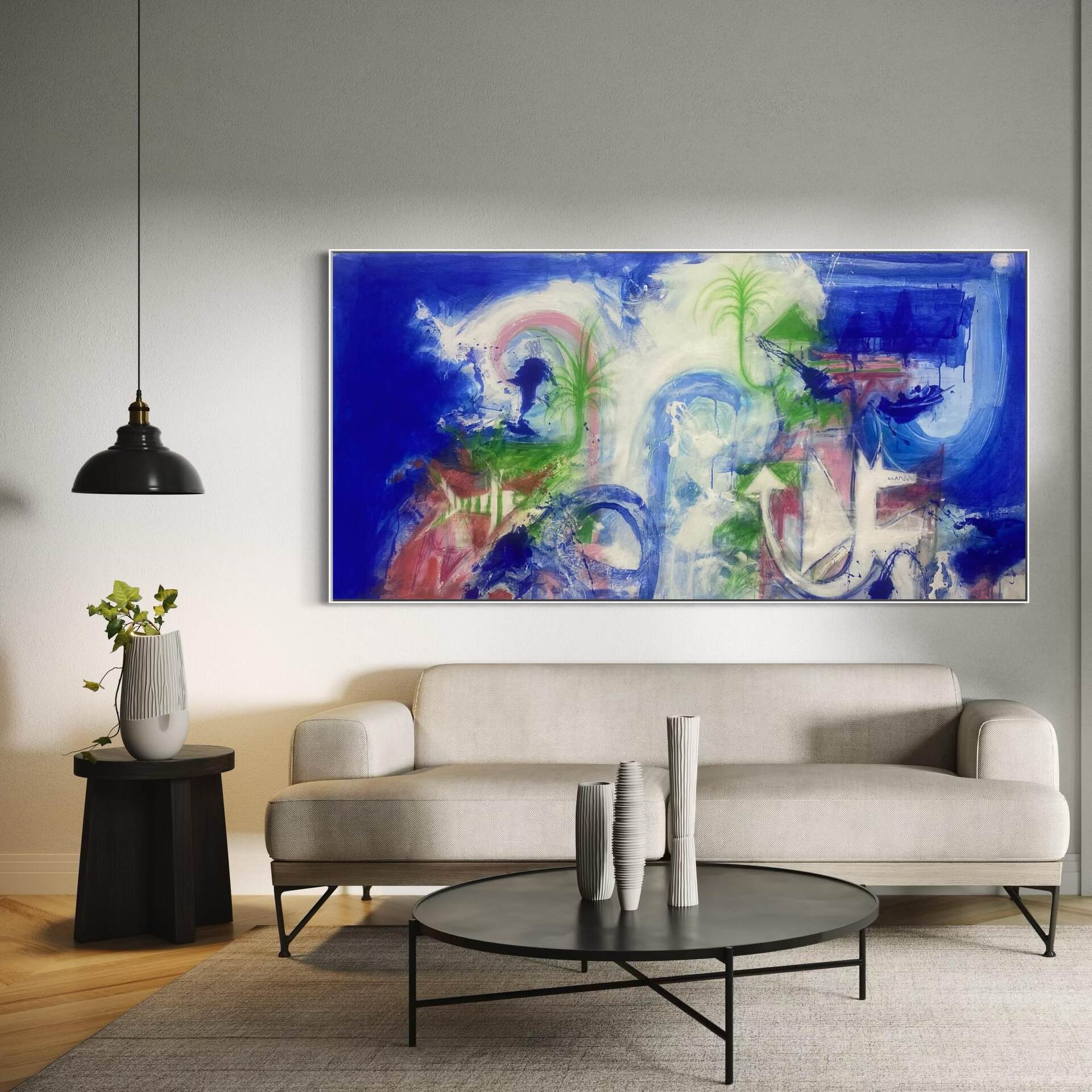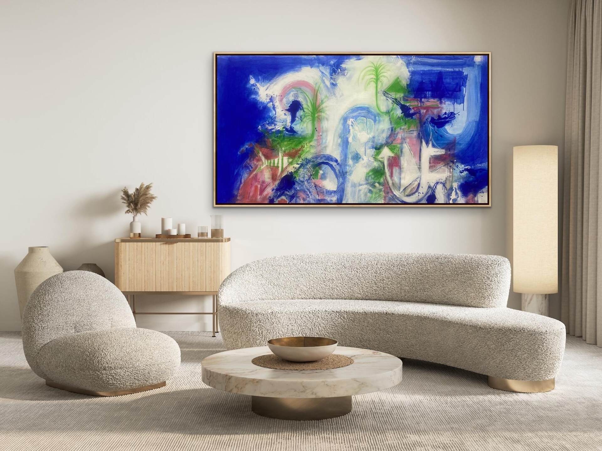 Acrylic & Crayon Canvas, Framed by Artist